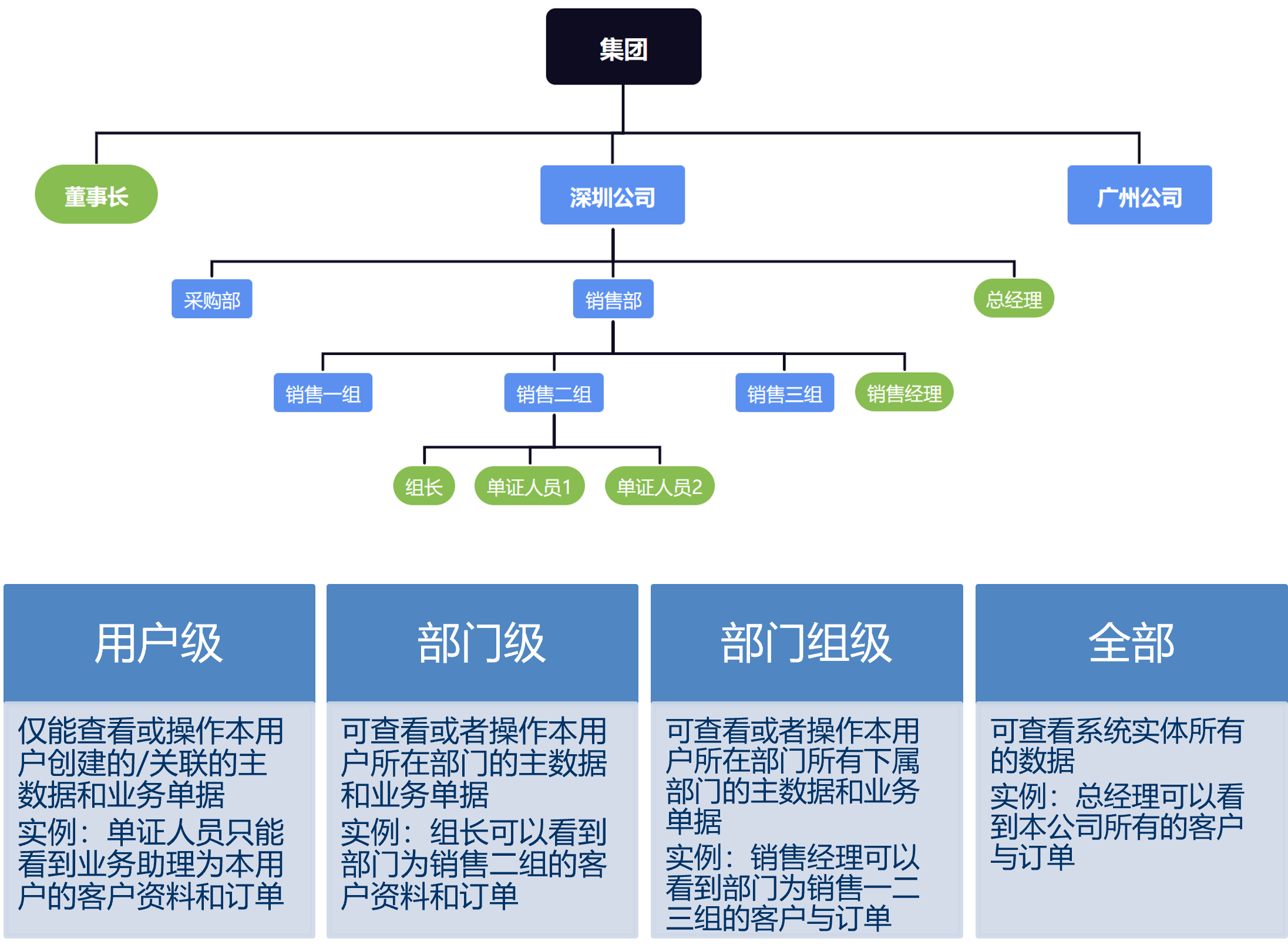 供應鏈行(xíng)業(yè)因其貿易分(fēn)銷屬性對(duì ≥↑)系統數(shù)據權限有(yǒu)著(zhe)複雜(zá)的(de)需求,金(jīn)谷科(kē↑)技(jì)通(tōng)過多(duō)級部門(mén)+用≠↓(yòng)戶+數(shù)據資源三聯結構并使用(yòng)四級權限模式分(fēn)級别的(d₽e)控制(zhì)用(yòng)戶/角色所能(néng)查閱及操作(zuò)的(de)數(shù)≈₩Ω據資源,并可(kě)精細化(huà)控制(zhì)到(≈↓Ω→dào)數(shù)據資源的(de)字段可(kě)見(jiàn)性
